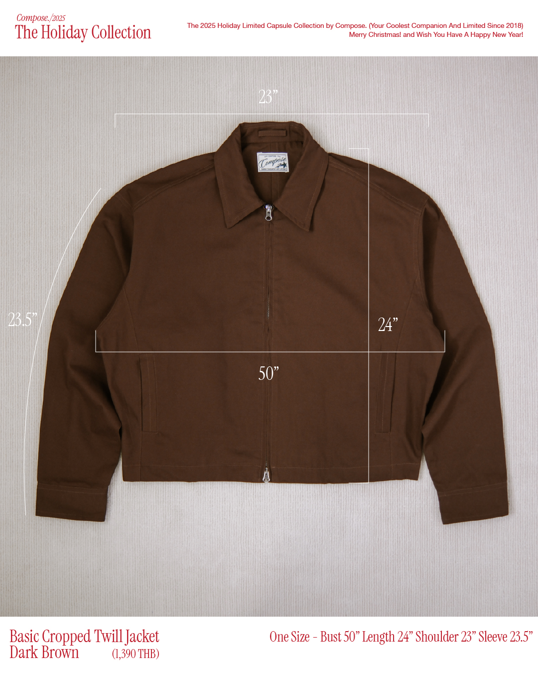 COMPOSE - Basic Cropped Twill Jacket - Dark Brown