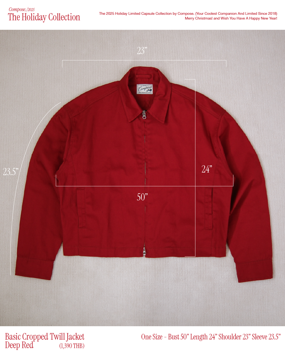 COMPOSE - Basic Cropped Twill Jacket - Deep Red