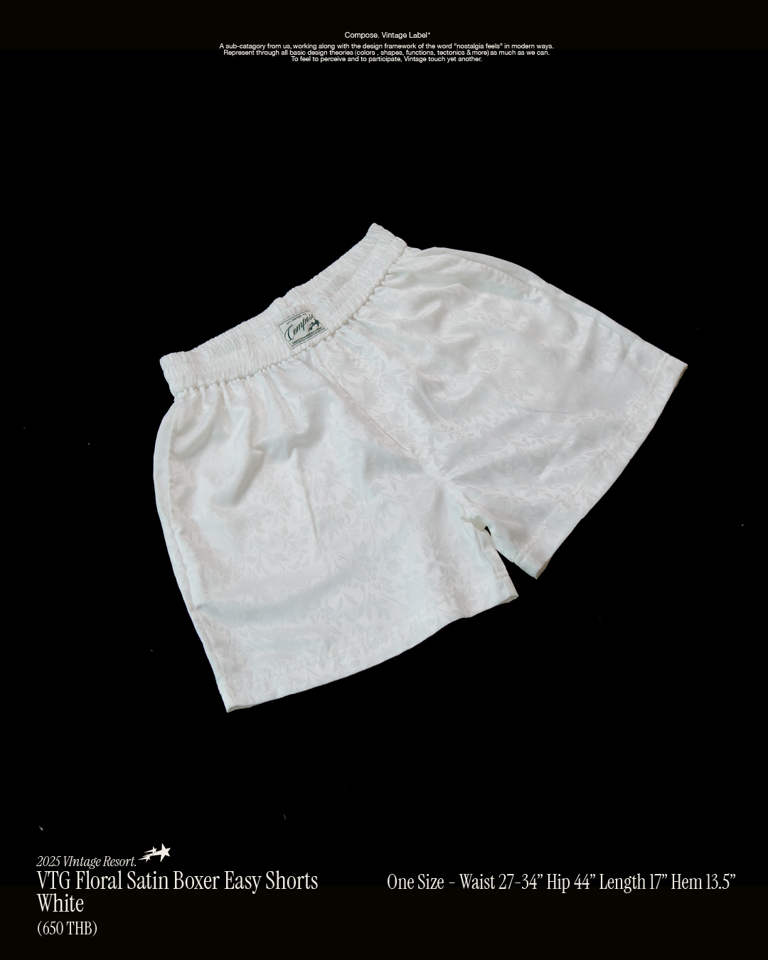 COMPOSE - VTG Floral Satin Boxer Easy Shorts - White