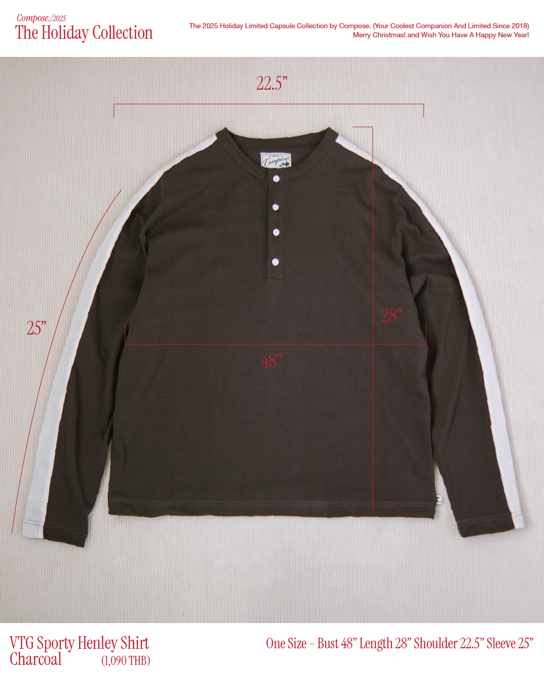 COMPOSE - VTG Sporty Henley Shirt - Charcoal