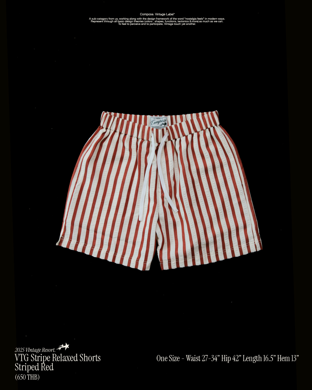 COMPOSE - VTG Stripe Relaxed Shorts - Striped Red