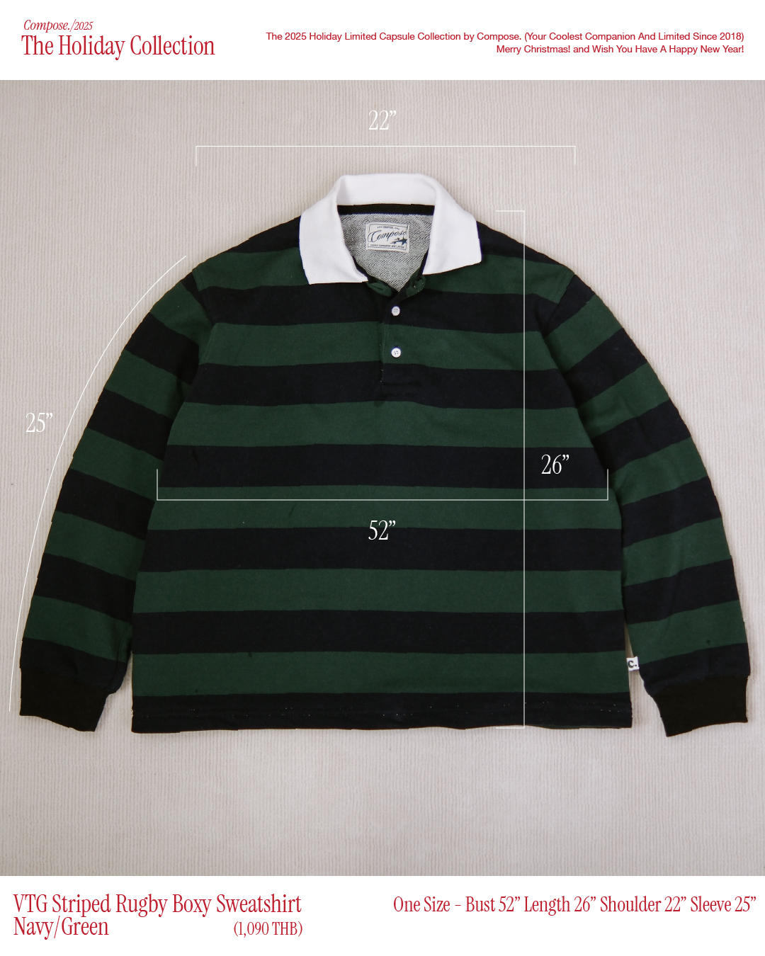 COMPOSE - VTG Striped Rugby Boxy Sweatshirt - Navy/Green