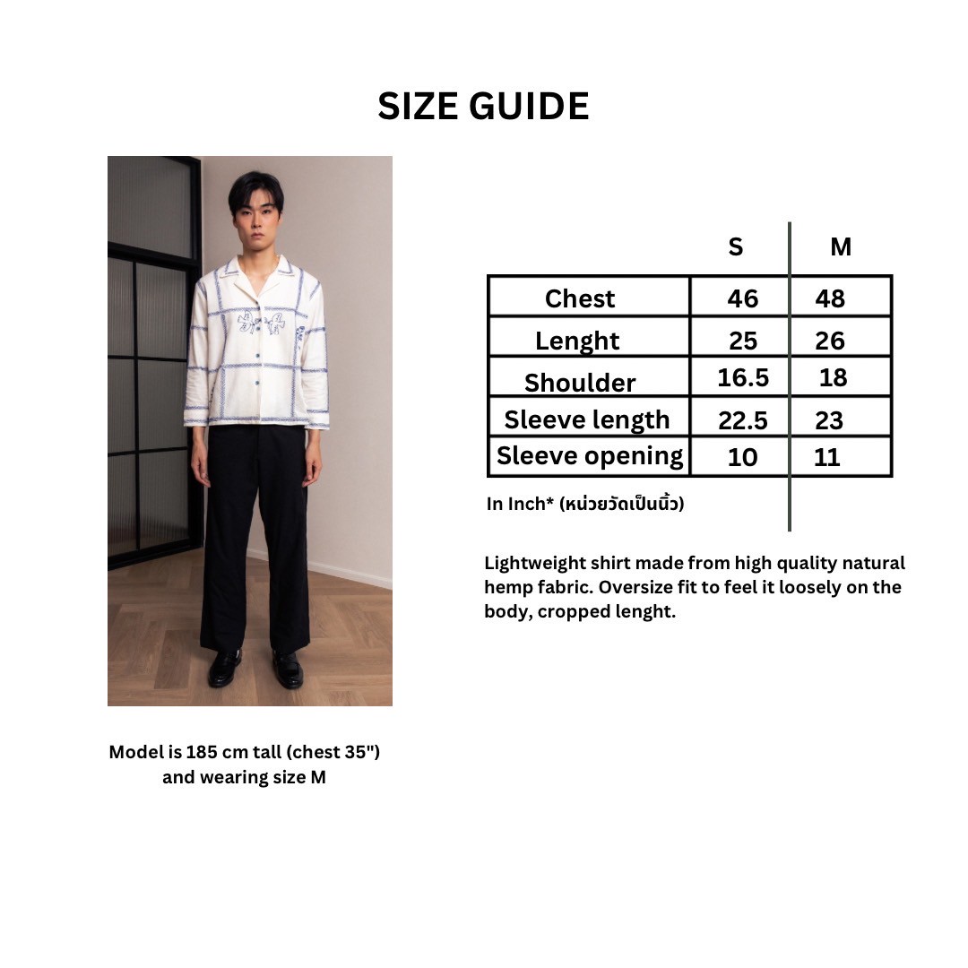 PICKLE PROJECTS - Azure Bloom on Grid Hand Embroidered L/S Shirt